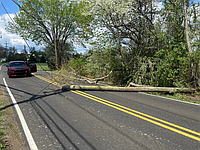 Tree down on wires closes stretch of Pickertown Road in Warringt…