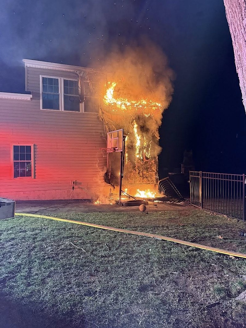 According to Doylestown Township Fire Co., the 12:38 a.m. call on Sunday was reported on the 2200 block of Turk Road, with a fully-involved fire on the first and second stories of a residential home. The blaze was hot enough to warp and melt part of a metal fence along the backyard perimeter.