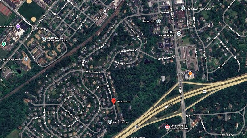 The tract is bounded by Route 202, South Main Street, Steeplechase Drive, Birdsong Way, and Foxchase Lane.