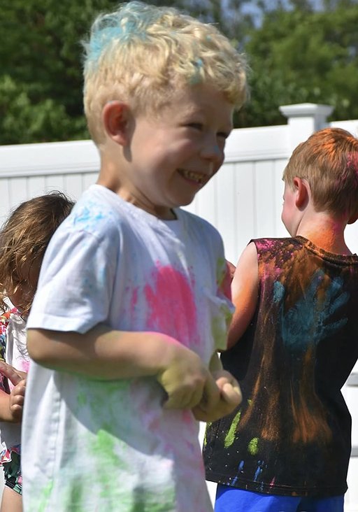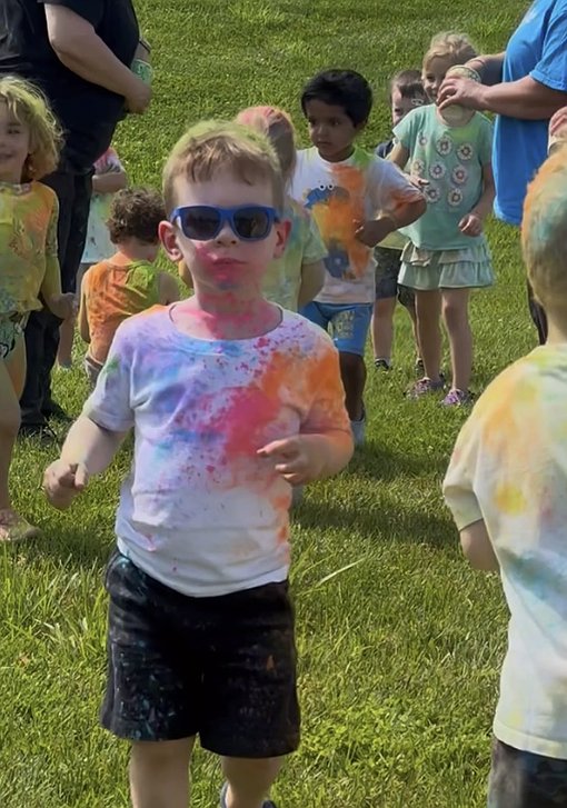 Teachers and staff joined in on the fun, tossing safe, washable colored powder as children dashed by, creating a rainbow of excitement to kick off the summer.