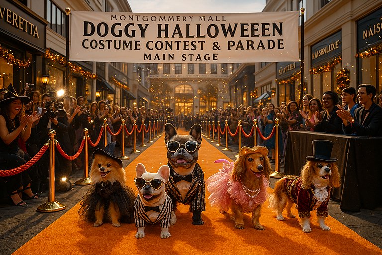 On Thursday, Oct. 30, 2025 (Mischief Night) from 5 p.m. to 7 p.m., the 3rd Annual Doggy Halloween Costume Parade and Contest returns with a brand-new theme, “Montgomery Mall Goes Pawllywood!”