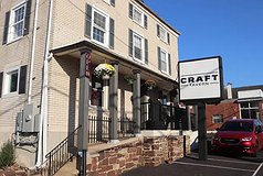 Located at 101 S. Main Street, Craft Tavern offers craft cocktails and made-from-scratch food in an elegant, vintage atmosphere, with dim bar lighting, tin ceilings, dark wood flooring and brocade wallpaper populated with Prohibition-era photos.