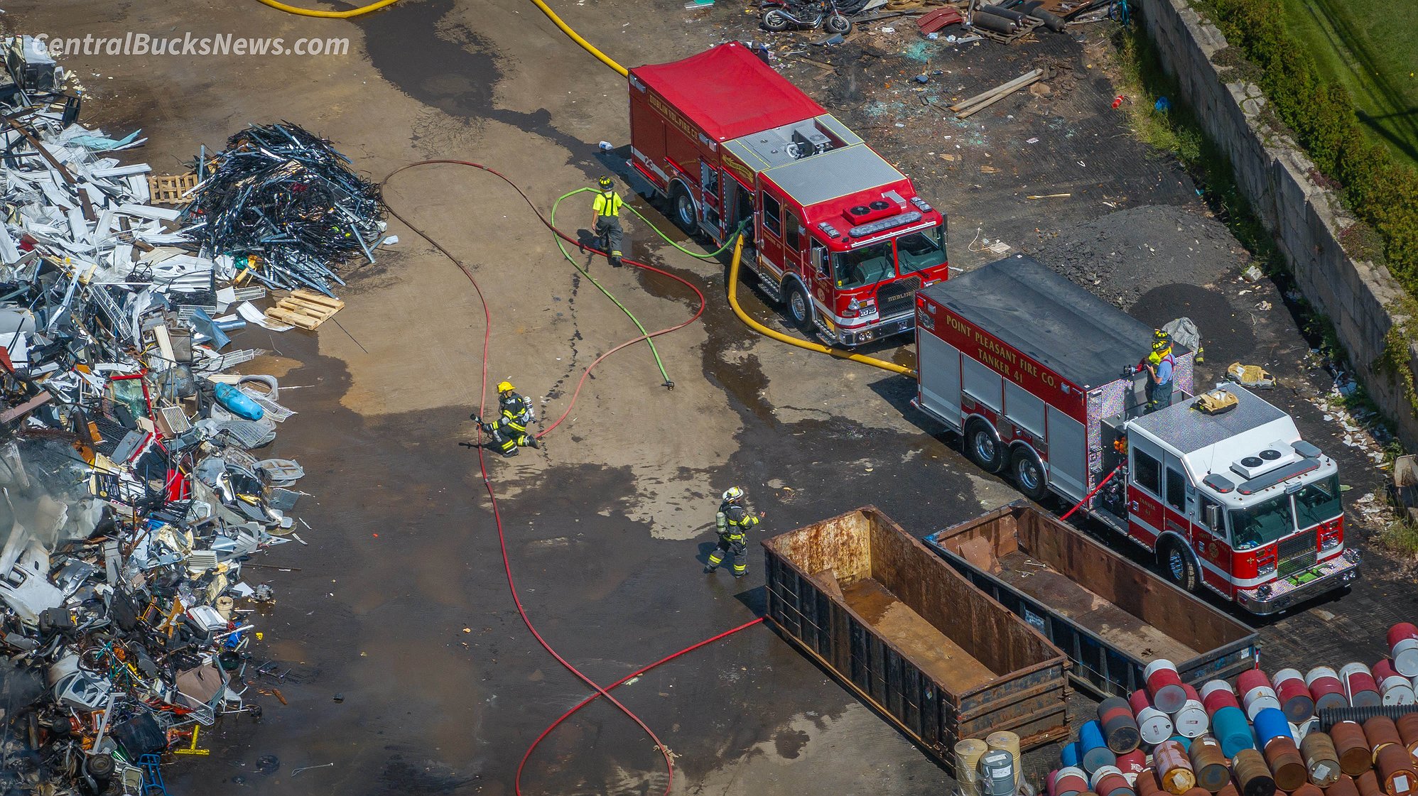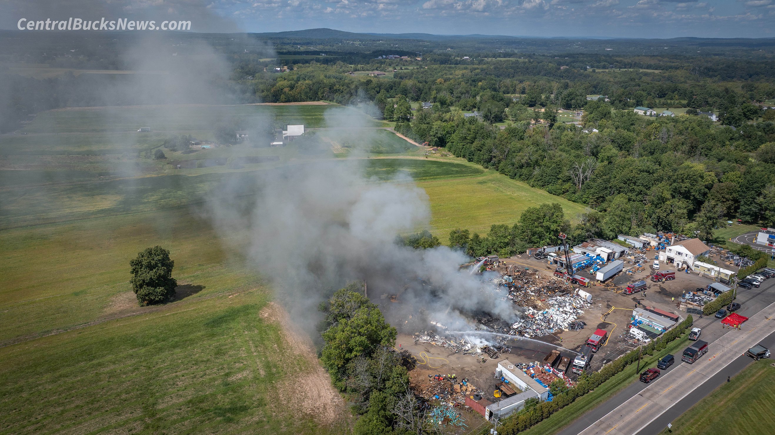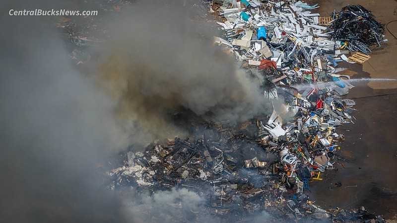 Numerous fire companies from Bucks County and one from New Jersey are on scene of a massive rubbish and tire fire at a Plumstead Township scrap metal recycler on Easton Road in Wednesday afternoon.