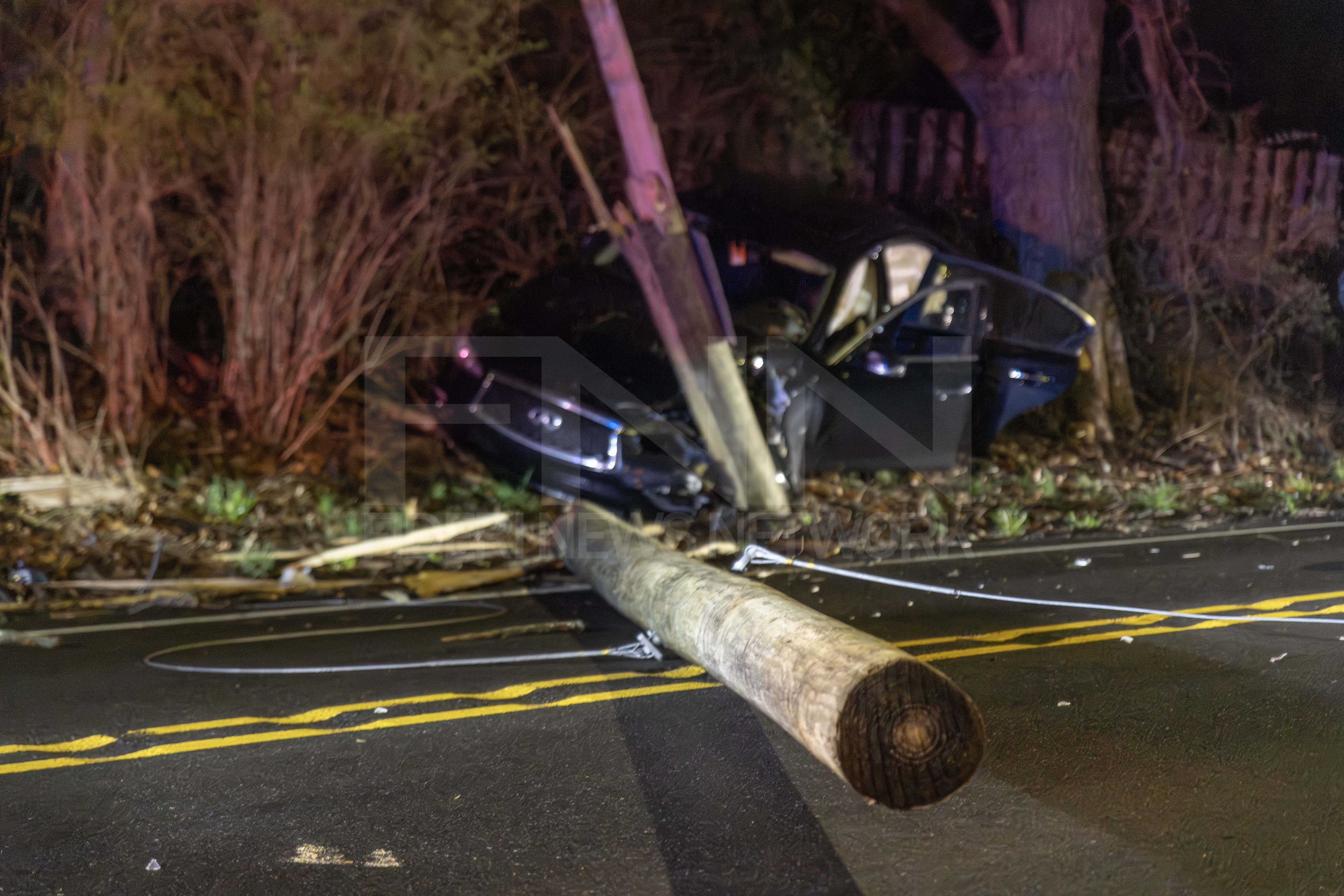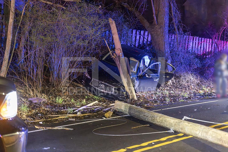 The crash occurred around 9:40 p.m. at the intersection of Upper State Road and Bristol Road. According to initial reports, a driver of a black Infiniti sedan struck a pole along Upper State Road just before the intersection, splitting it in half and sending debris into the roadway.