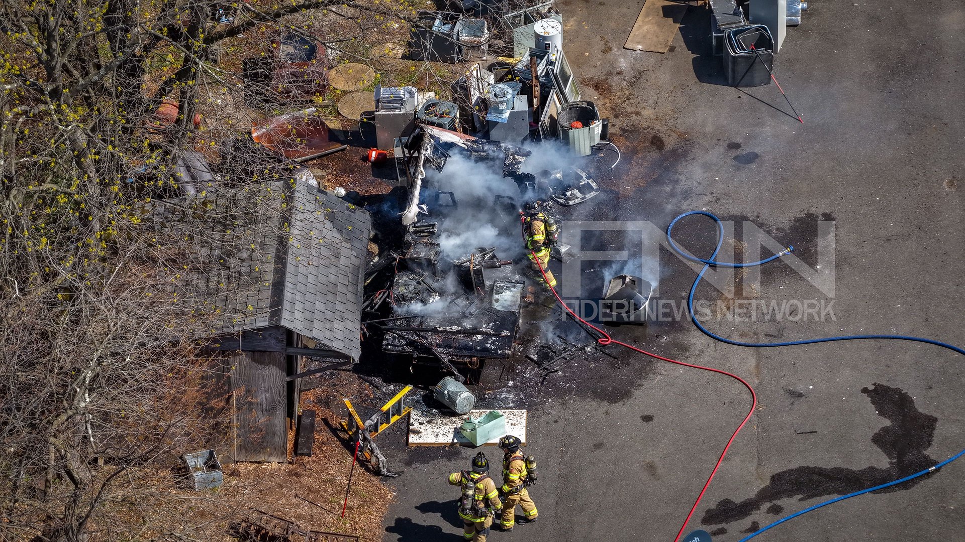 Arriving crews encountered a fully involved vehicle in the driveway of the residence. The vehicle was close to an outside shed, which also began to catch fire.