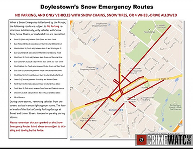 Meanwhile, Doylestown Borough also declared a Winter Storm Emergency, effective 11 p.m. Saturday, and continuing until snow emergency routes are fully cleared.